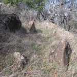 Sunol Ridge, South of Prayer CircleRock WallElevation 1711 ft.Part of this wall covers a seasonal stream bed. Look for a stone seat at the wall’s highest point.A section of this wall lies on private property. One should secure permission before visiting it.