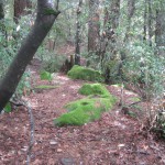 Charcoal Road — Saratoga16 bedrock mortars in a nice ridgeline setting.Elevation 2516 ft.One of three sites Joel uncovered in a single day.Just some rocks in the woods–or so it seems.A closer look at the main mortar rock.Check out this video by Alexander Kerekes of several sites in the Santa Cruz Mountains including Charcoal Road.
